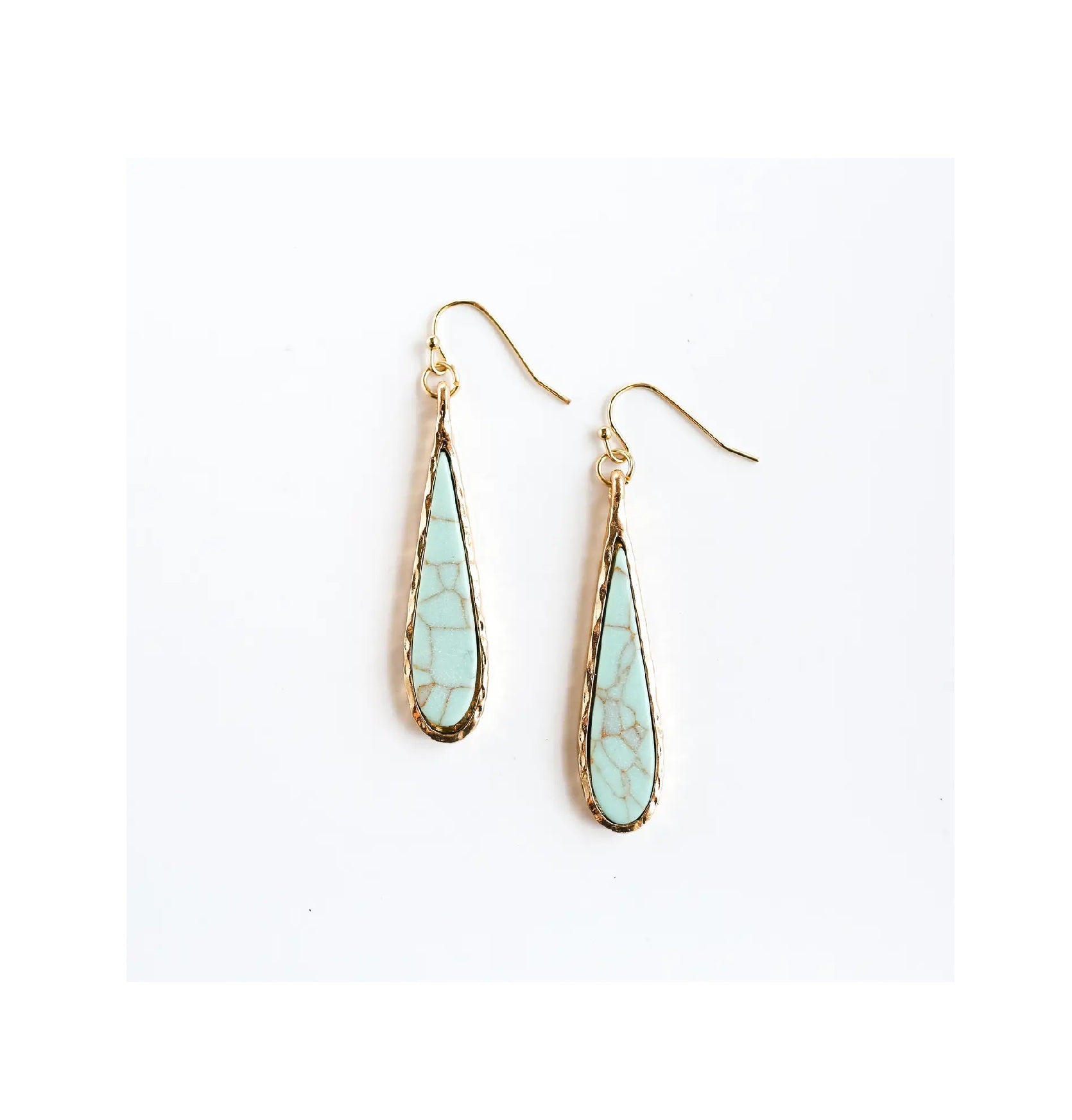Gold Thing Teardrop Earrings with Turquoise Inlay