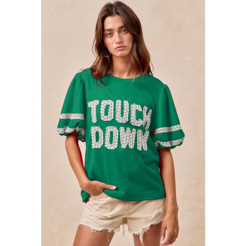 Gameday Theme Sleeve Top with Touch Down Patchwork