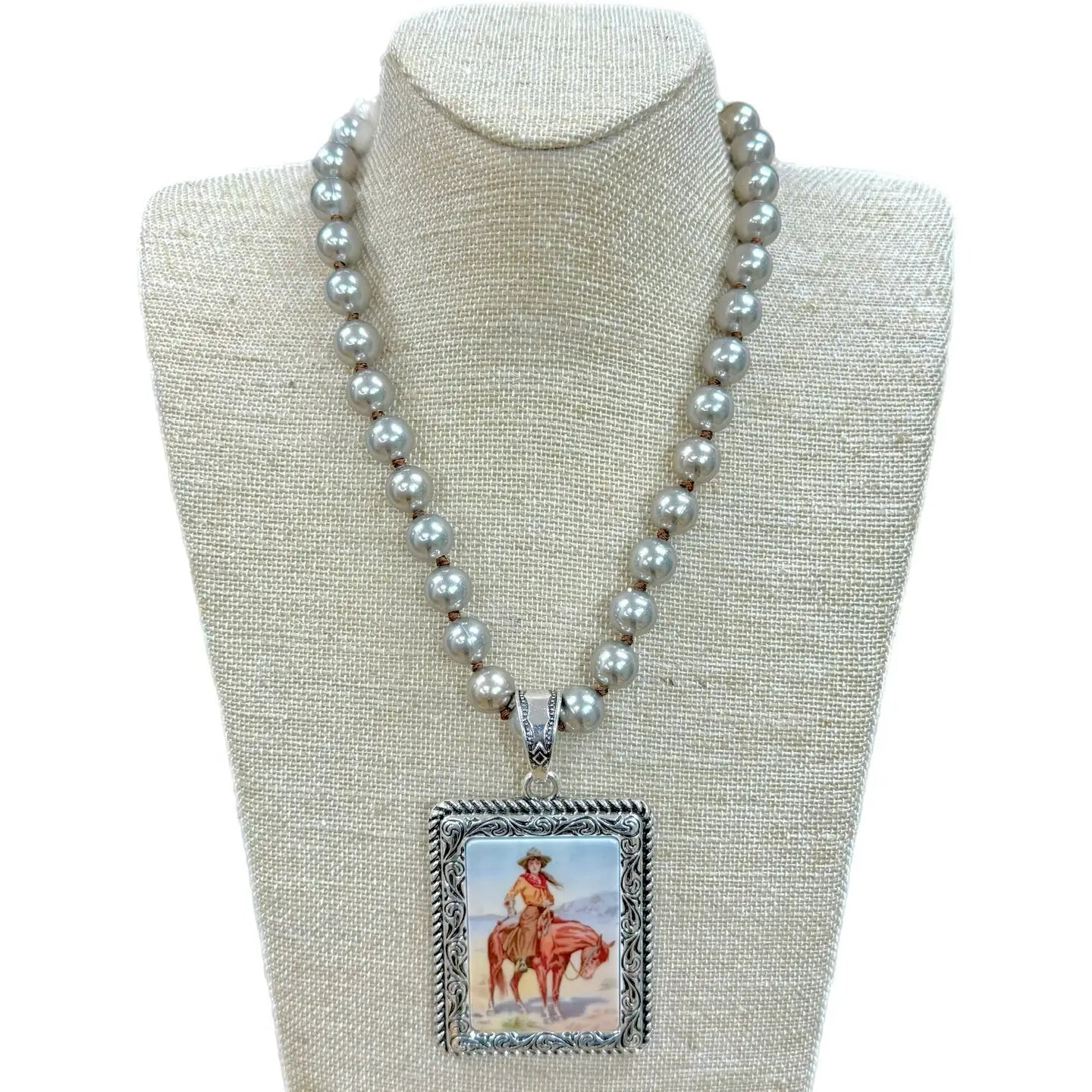 Vintage Cowgirl with Etched & Rope Edge On Faux Navajo Pearl Necklace