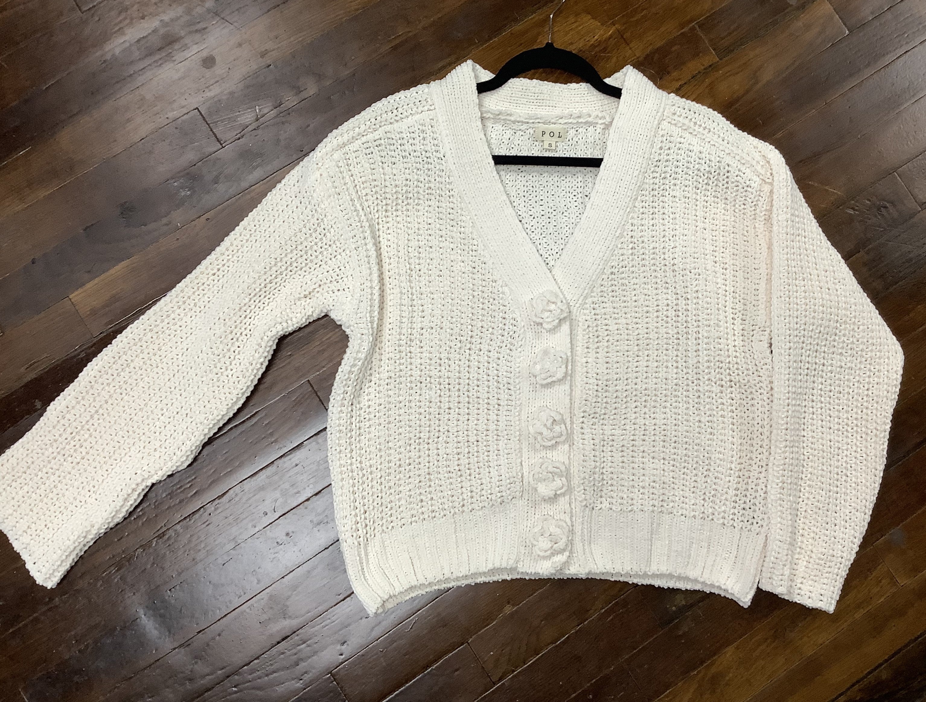 Long sleeve regular fit cardigan in chenille with exaggerated buttons