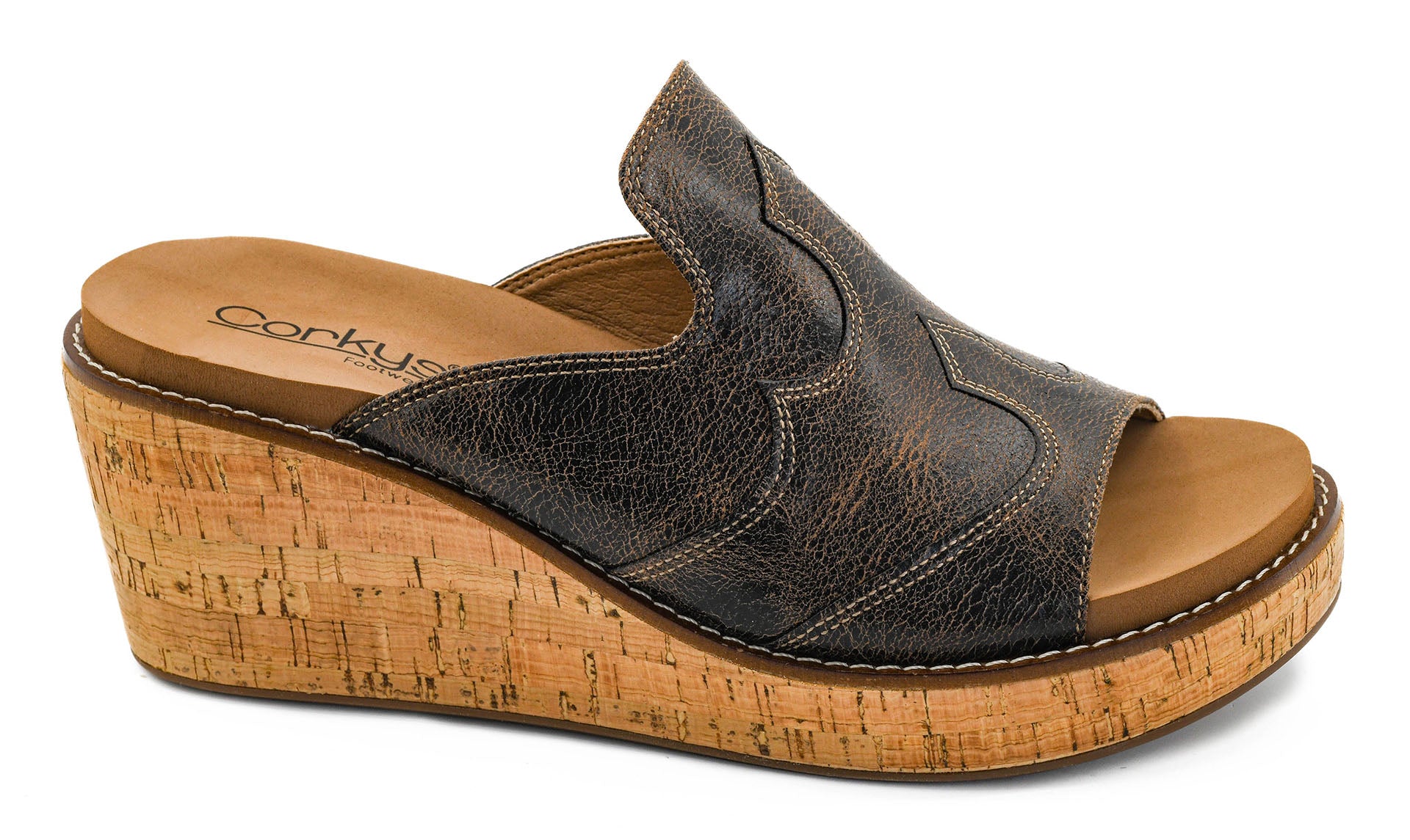 Saddle up your autumn style with these distressed faux leather cork wedges—where Western vibes meet walkable comfort. With stitched cowboy boot-inspired detailing and a comfy cork platform, these slip-on sandals are ready to take you from festivals to farmers markets in standout style.