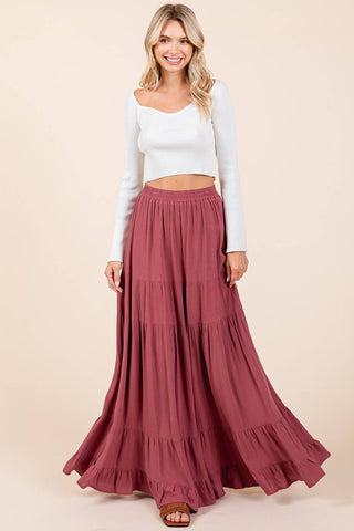 Tiered Flowy Elastic Waist Lined Maxi Skirt