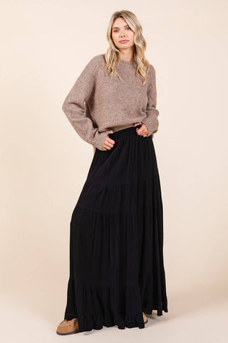 Flowy Tiered Elastic Waist Lined Maxi Skirt
