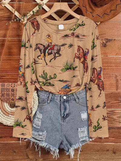 Leopard Print Washed Waffle Thermal Top With Thumb Hole