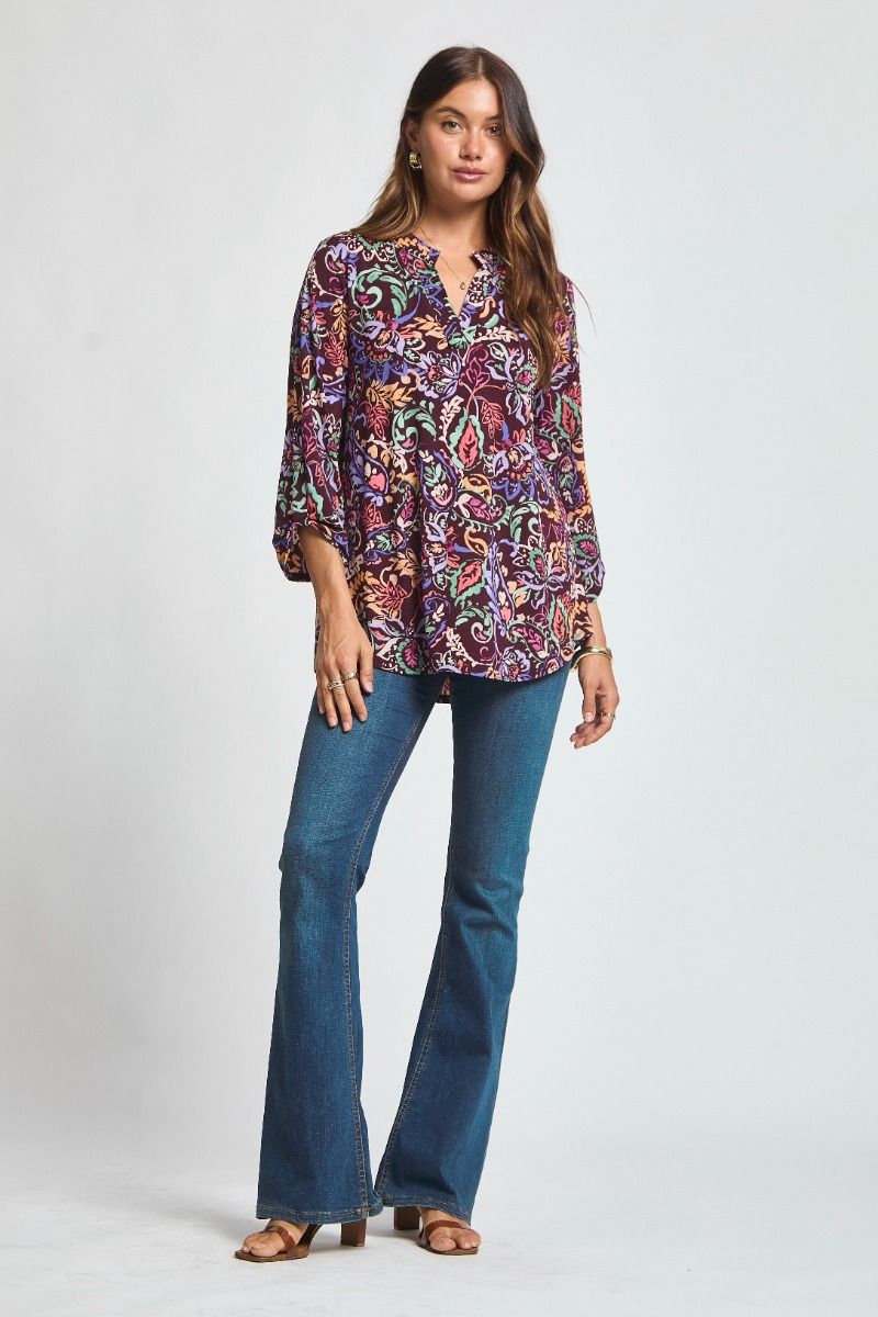Our signature Lizzy Top is crafted from a soft, luxurious poly blend that offers lightweight, wrinkle-free comfort. Designed for easy care, this travel-friendly top is cooler than linen, making it the ultimate choice for life on the go. The Lizzy also features a mandarin collar neckline and 3/4" length sleeves with tab details. Its relaxed, flowy fit and subtle high-low hemline ensure a flattering silhouette for any occasion.