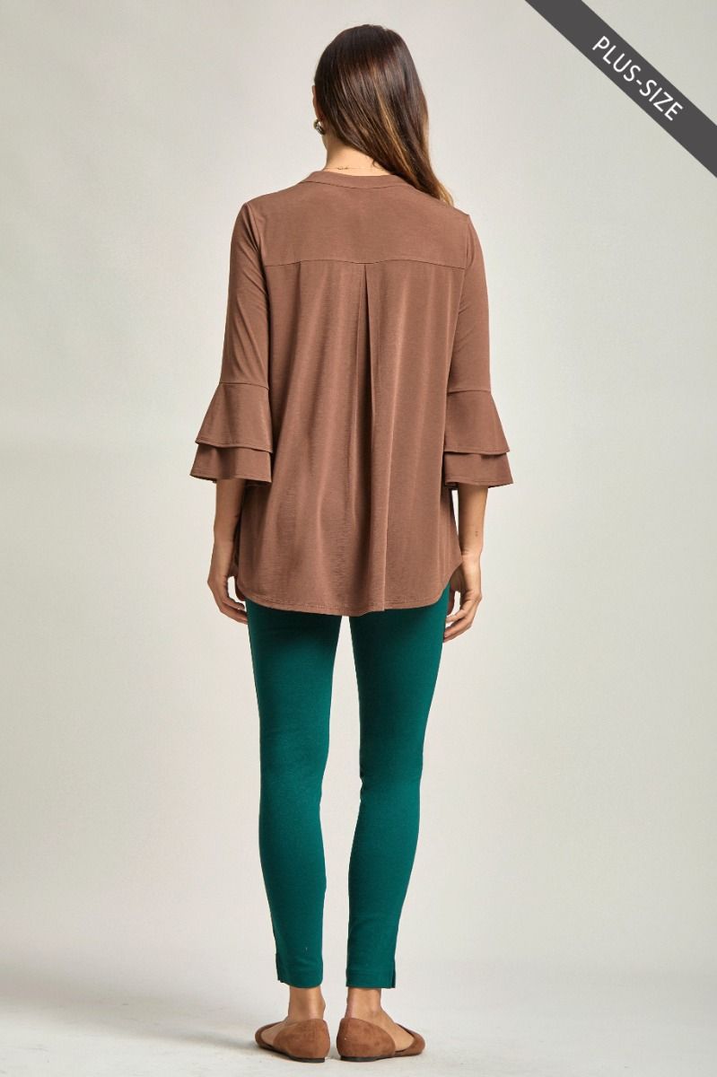 Meet the belled LIZZY! A fresh take on effortless elegance. Designed with a relaxed fit, this versatile top features a refined Lizzy neck and beautifully tiered bell sleeves that add a touch of romantic flair.